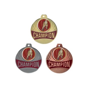 Médaille avec CHAMPION en lettre d'or sur fond bordeaux émaillé