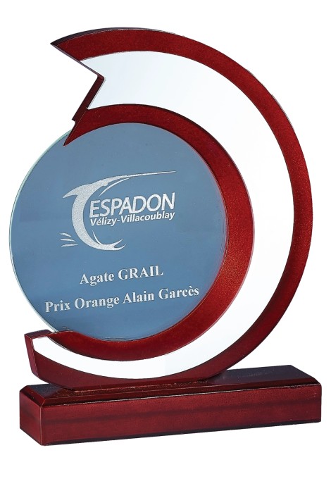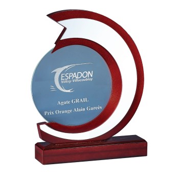 TROPHÉE - hauteur : 27 cm ✓ Matière du trophée : Verre et Bois ✓ Finition verre Cristal et bois vernis brillant avec insert argent ✓ Possibilité d'ajouter un écrin : Voir étape 5 après sélection de l'activité ✓ Personnalisation : Télécharger votre logo après l'étape 1 ✓ Frais Technique de 15 €, une seule fois et valable pour tous les trophées commandés avec ce logo. ✓ Une épreuve numérique vous sera envoyée au préalable à titre de contrôle ✓Gravure laser gratuite : Votre Logo et texte (40 caractères inclus puis 0.05 € le caractère suppl.) ✓ Expédition en 48h après acceptation de la maquette. Attention : Le trophée étant en verre, en cas de chute ou de choc avec un objet dur il peut se casser et produire des pointes et des zones coupantes. Ne convient pas pour récompenser des jeunes enfants. Traitez le verre avec l'attention qui est due a un matériau noble mais fragile.
