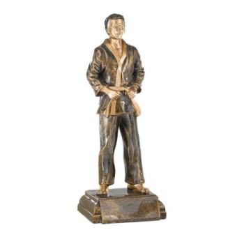 Karatéka de pain-pied sur socle rectangulaire, Sculpture en résine façon bronze