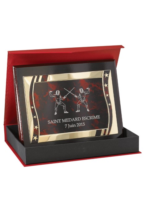 ✓ Matière de la plaque : Métal doré & fond marbré rouge