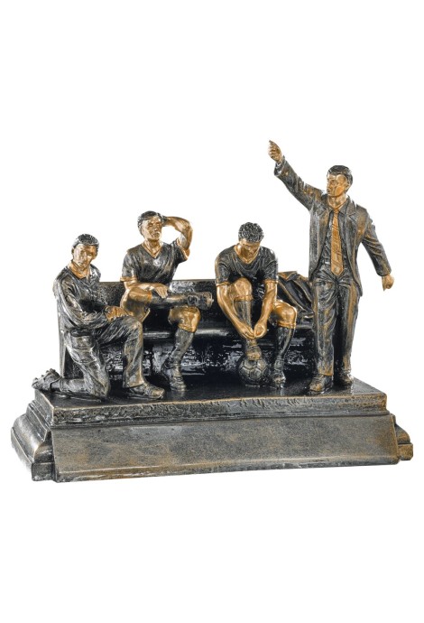 Entraîneur sur le banc de touche, sculpture en résine façon bronze
