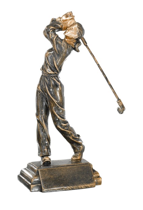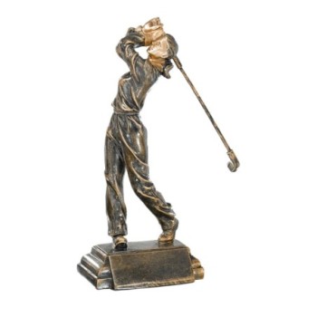 En promotion : Joueuse de Golf de plain-pied sur socle, Sculpture en résine façon bronze