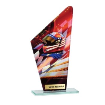 Trophée en Verre imprimée collé sur un socle en Verre Jade transparent