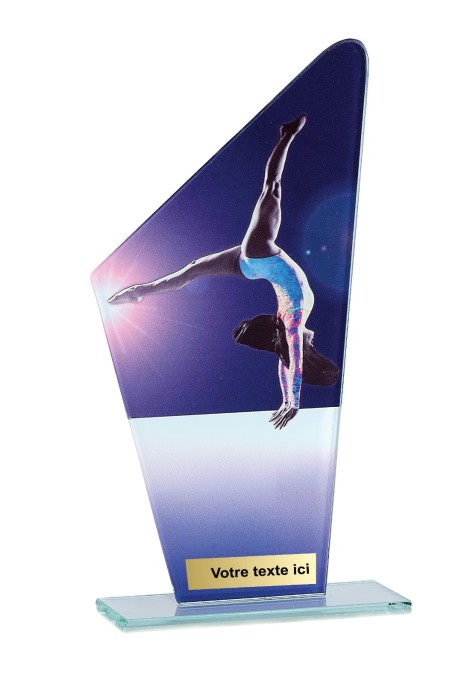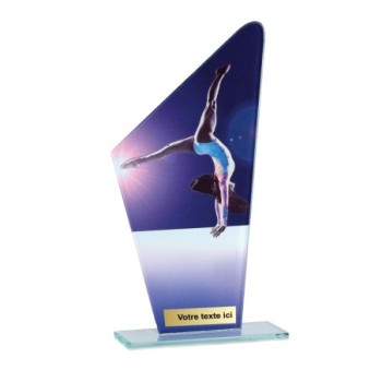 Trophée en Verre imprimée collé sur un socle en Verre Jade transparent