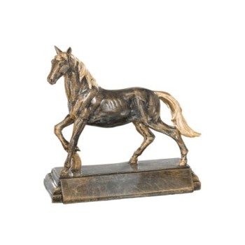 Cheval de plain-pied sur socle, sculpture en résine façon bronze